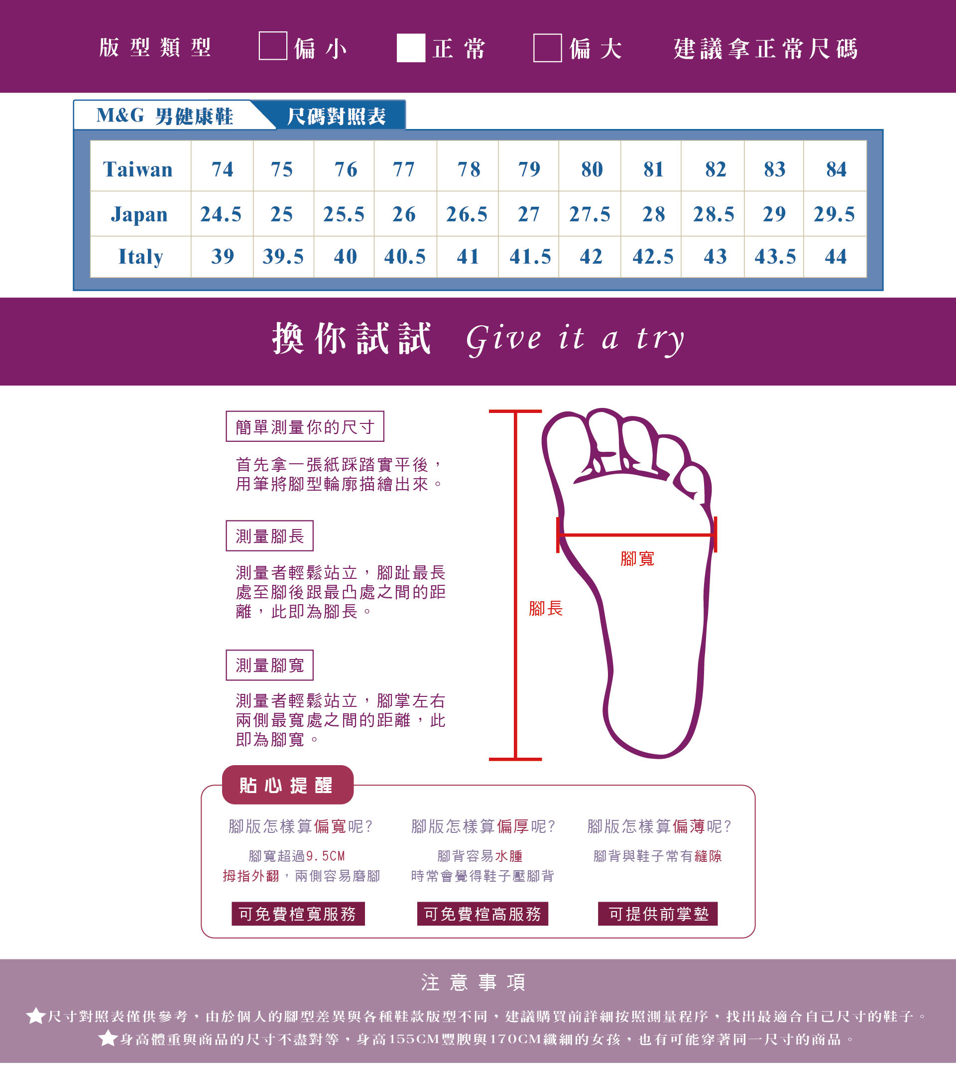 提供客製 - 楦頭加寬、腳背加高