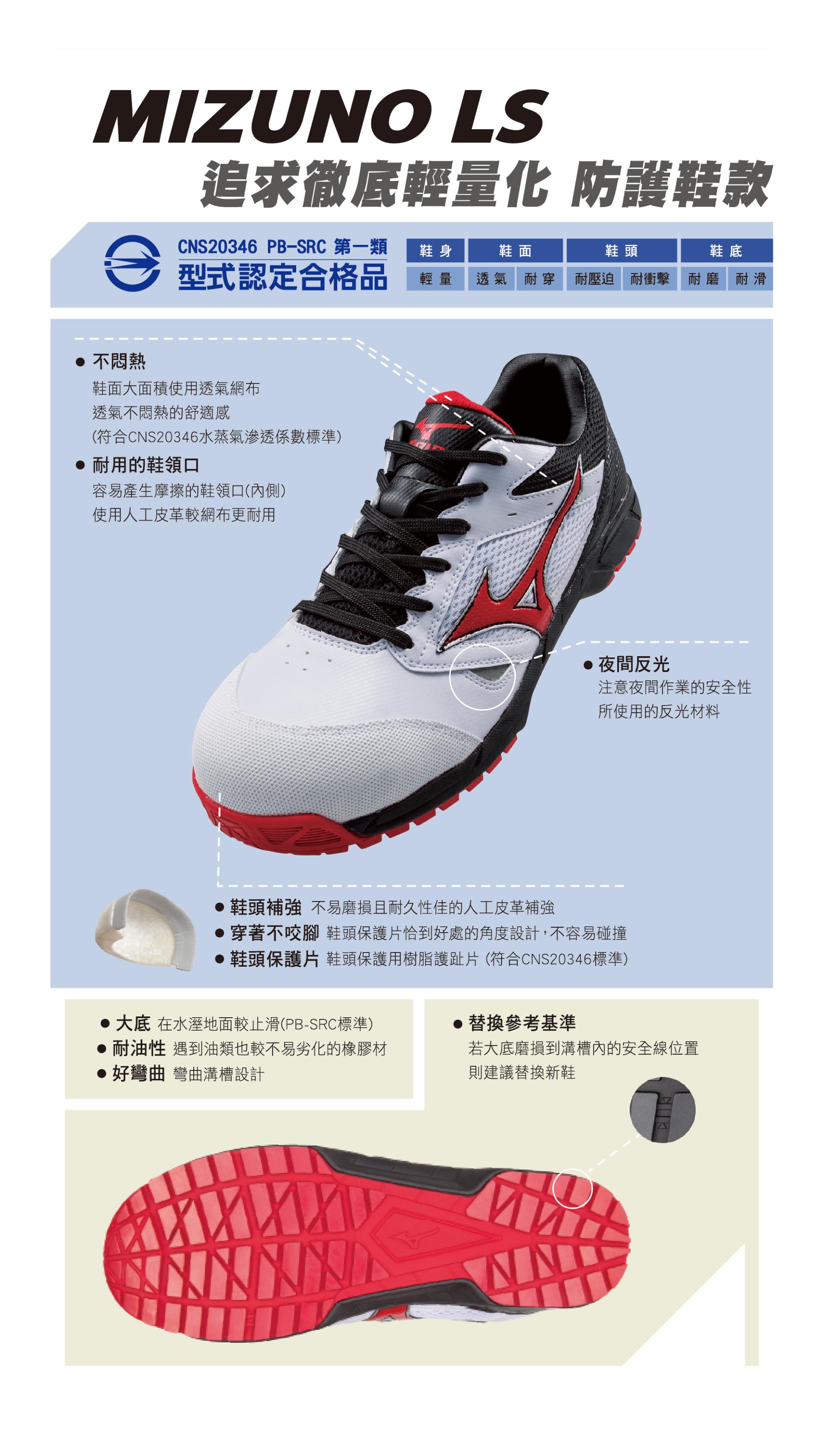 女款LS白紅輕量安全鞋-CD07067